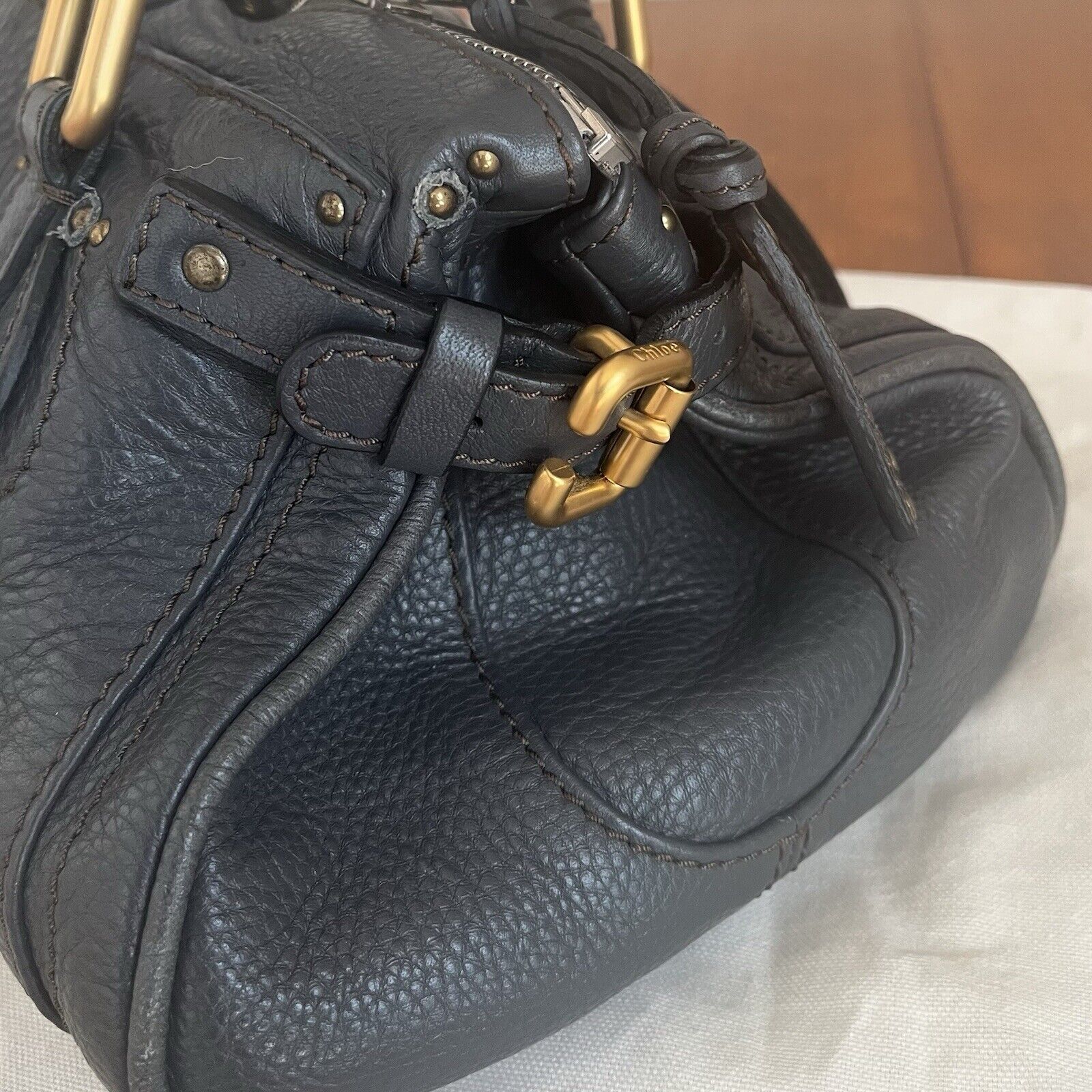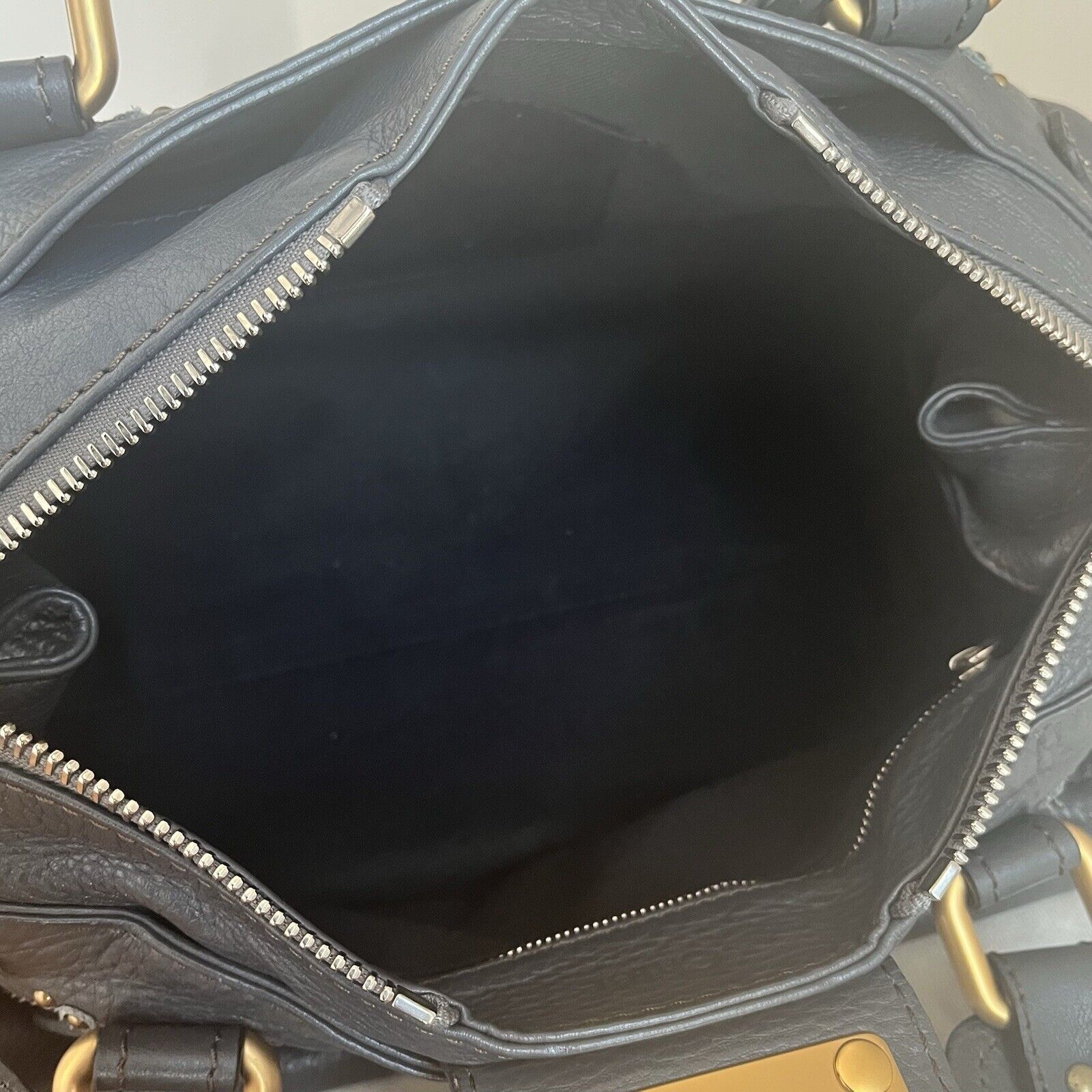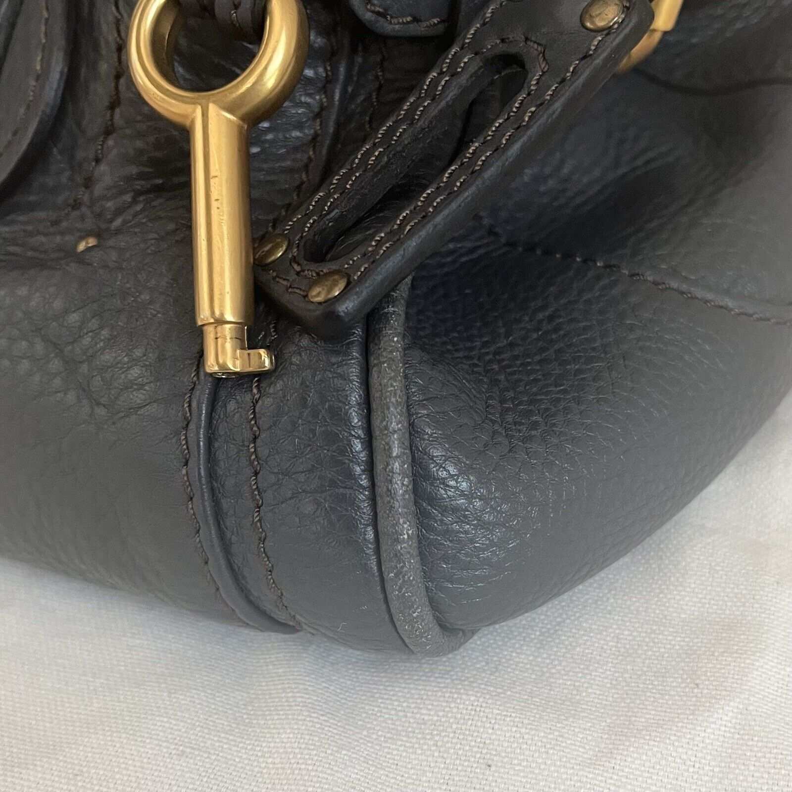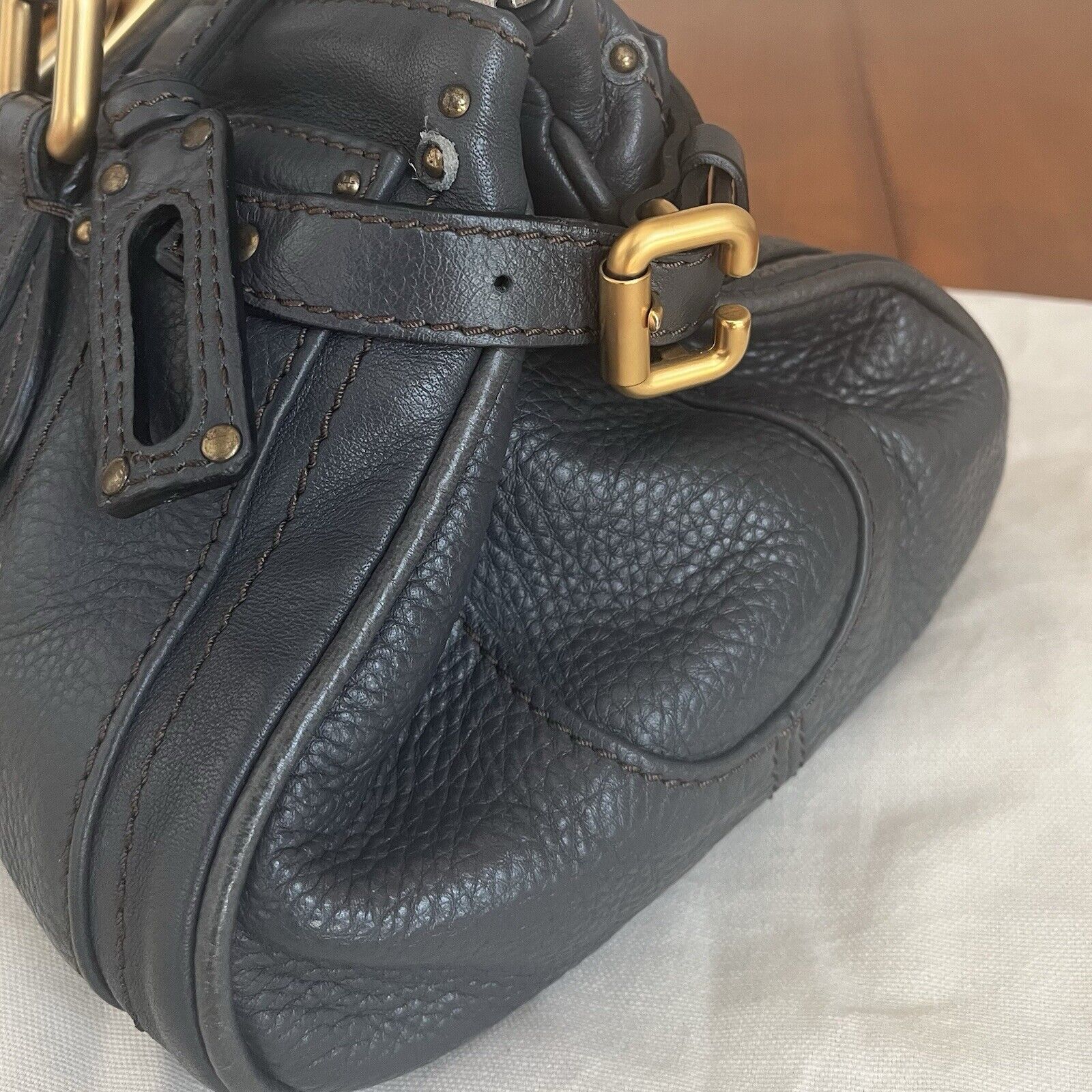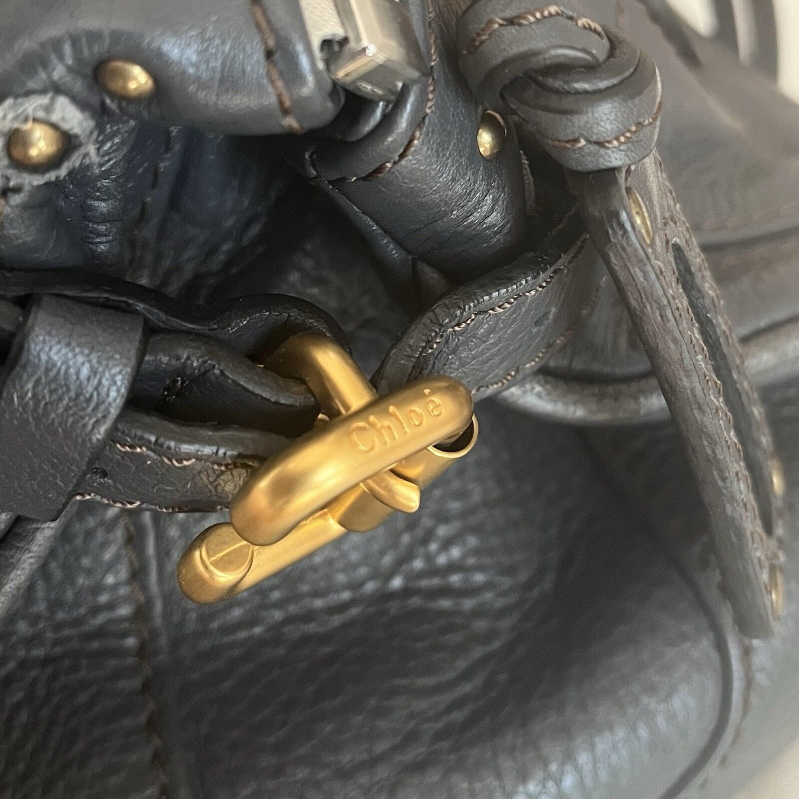 Chloe paddington leather hand bag dark gray leather medium padlock key card f s