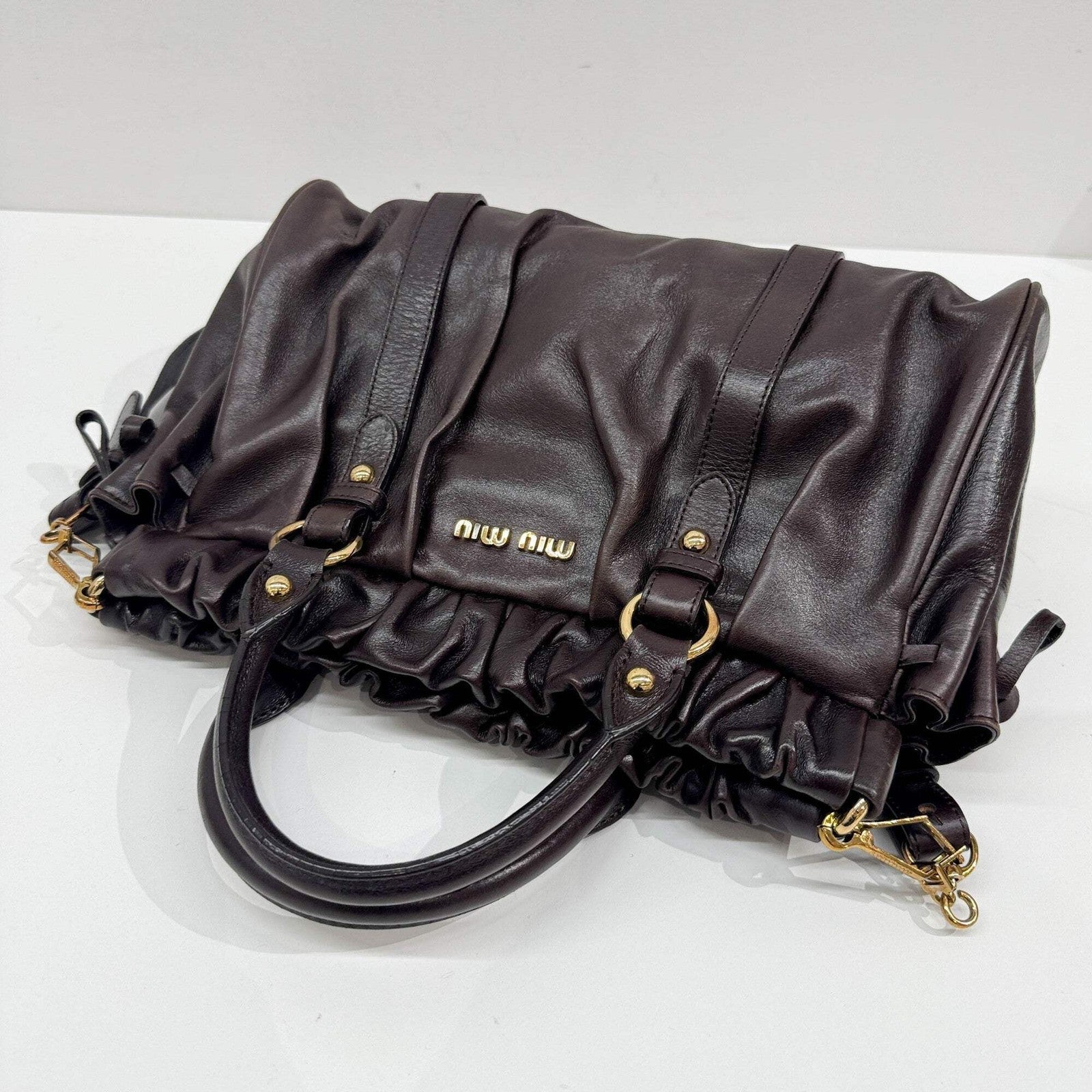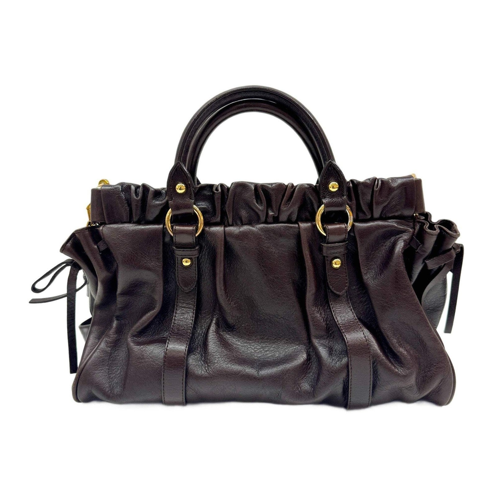 MIU MIU Vitello Dark Brown Leather Two Way Bag