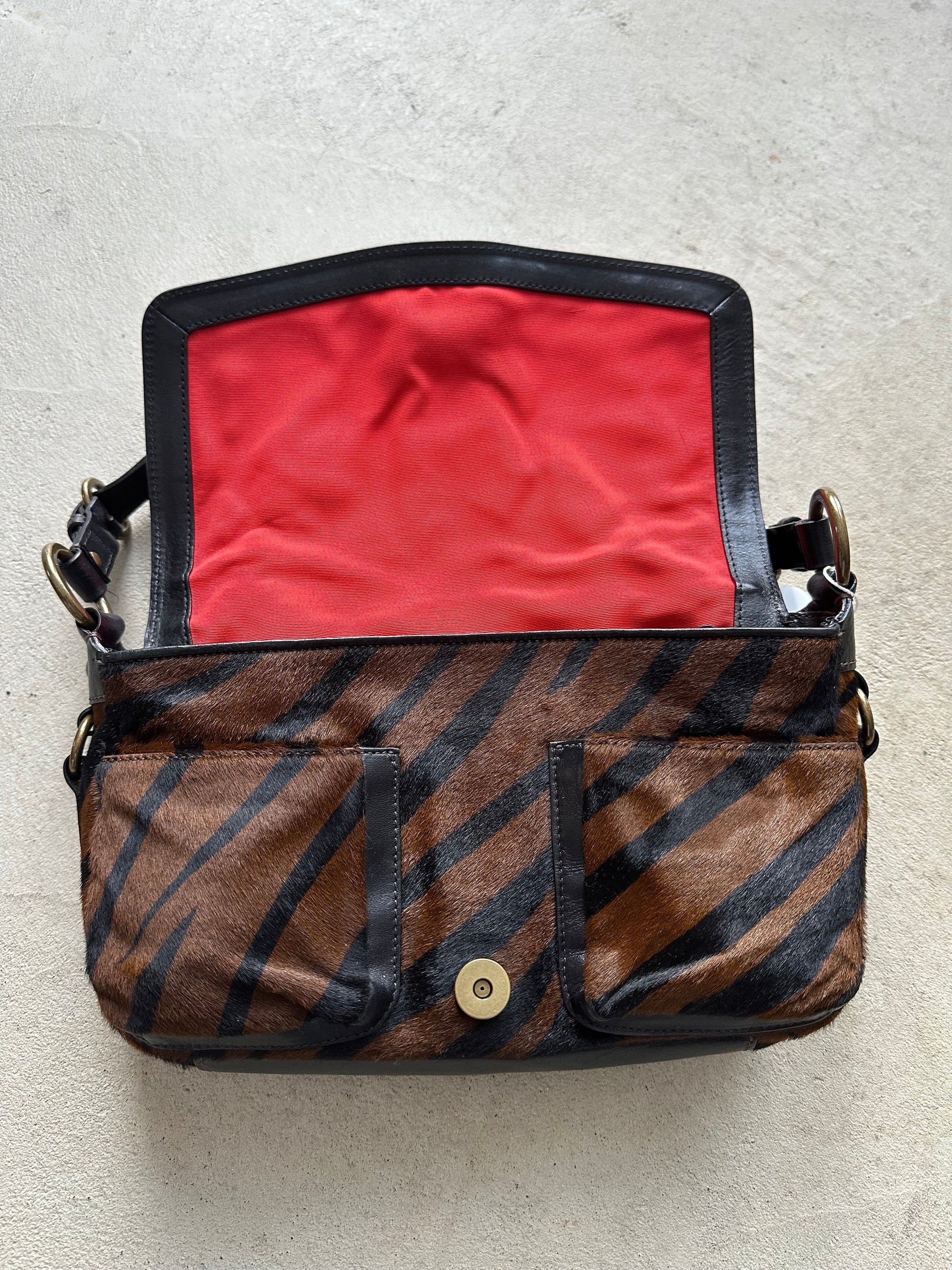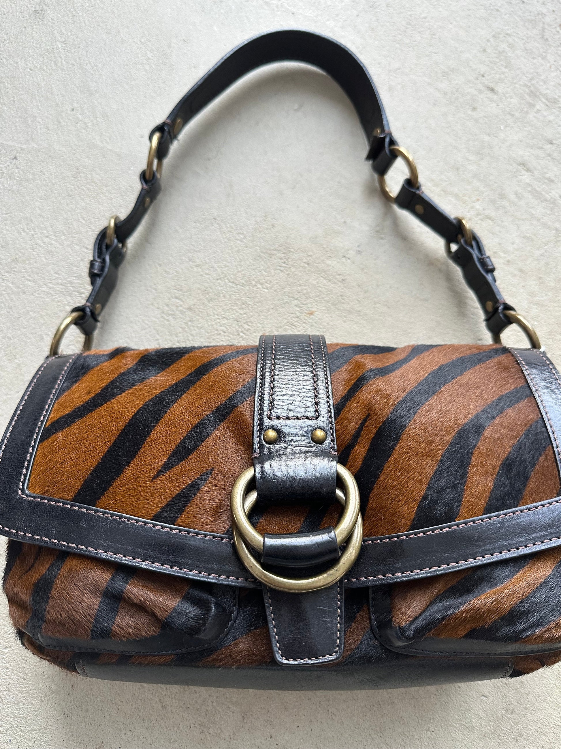 rare vintage y2k coach tiger print pony hair shoulder bag