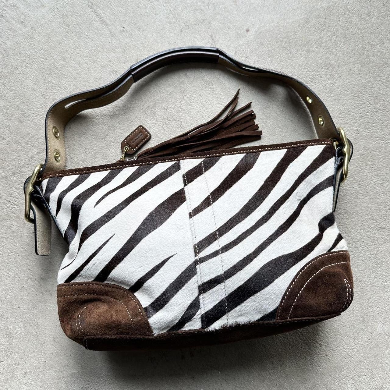 rare vintage y2k coach zebra print pony hair shoulder bag