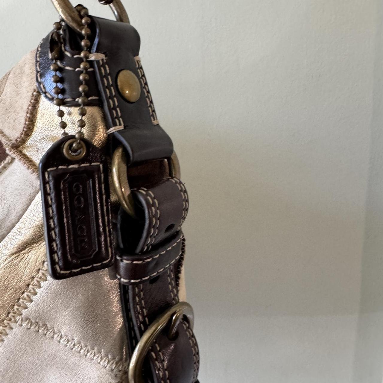 Vintage Y2K Coach Chelsea suede patchwork shoulder bag! In good condition, this patchwork is beautiful with neutral and metallic tones. Comes with its original coach hang tag! Exterior has minor wear shown in pics, the interior is in pristine condition. Cute little kiss lock closure on top! Is very roomy inside can fit a lot! Boho chic western y2k grunge style bag