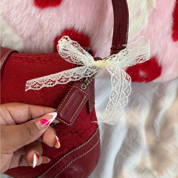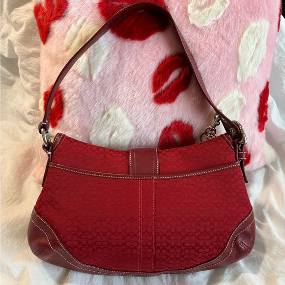 y2k coach red signature jacquard soho flap shoulder bag ♥️